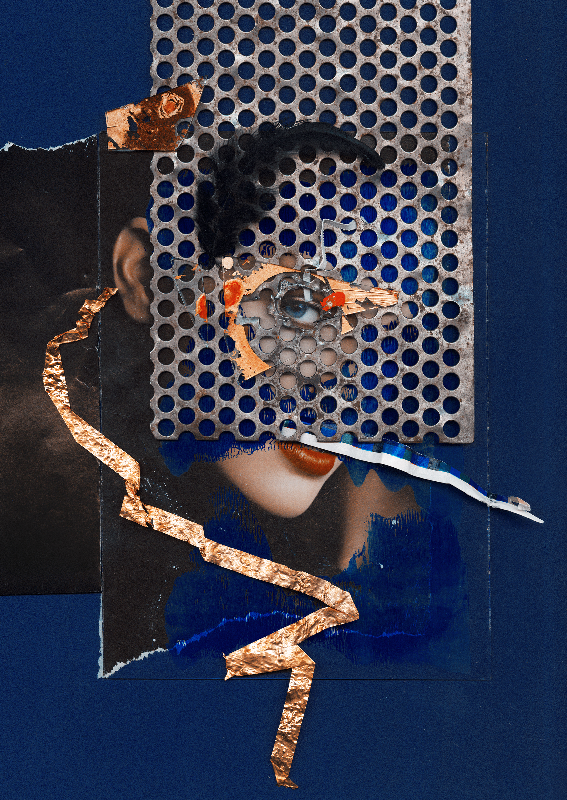mixed media collage on wood